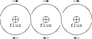 3図は2図の断面ですが、この断面を横切る任意の方向の磁束は、 ベクトル的に隣接する導体間を結ぶ x と y 軸方向の成分に分解できます。